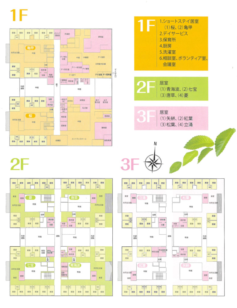 | 主な設備 | 居室(全室個室) 共同生活室(ユニットごとに1室) 医務室 浴室(一般浴、中間浴、機械浴) 相談室、面接室 ボランティア活動室 事務室、会議室 |
